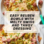 Keywords: Reuben bowls, corned beef recipe, Reuben sandwich twist, stovetop recipe, sauerkraut dish, Swiss cheese recipe
