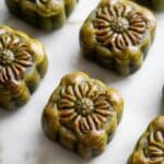Rich & Decadent Matcha Red Bean Mooncakes are traditional Chinese pastries with a vibrant green matcha-infused dough encasing sweet red bean paste. These mooncakes are beautifully molded, baked to perfection, and brushed with a delicate egg wash for a shiny, golden finish. Perfect for festive occasions or anytime you crave a refined, delicious treat.