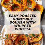Keywords: honeynut squash, roasted squash, fall side dish, roasted vegetables, whipped ricotta, maple syrup glaze, autumn recipe
