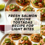 Salmon ceviche tostadas offer a refreshing twist on a classic Mexican favorite. Combining fresh, citrus-marinated salmon with crispy tortilla rounds, creamy avocado, and vibrant toppings, this dish is a perfect light appetizer or snack. It’s quick to prepare and sure to impress your guests.