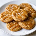 These salted caramel cookies combine rich buttery dough with gooey caramel and a hint of sea salt for the perfect sweet and salty treat. Soft and chewy with a caramel drizzle on top, they’re irresistible and easy to make at home.