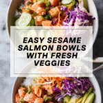 These Sesame Salmon Bowls are a fresh and vibrant meal perfect for any night of the week. Combining tender salmon, fluffy sushi rice, and crisp vegetables with a tangy sesame vinaigrette, they offer a balanced and flavorful experience that’s both satisfying and simple to prepare.