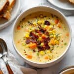 This Slow Cooker Creamy Chicken & Corn Soup is a comforting and hearty dish perfect for chilly days. Packed with tender chicken, sweet corn, and nutritious sweet potatoes, it offers a creamy texture with a hint of smoky bacon flavor. Easy to prepare in a slow cooker, this soup is ideal for a busy schedule without sacrificing homemade goodness.