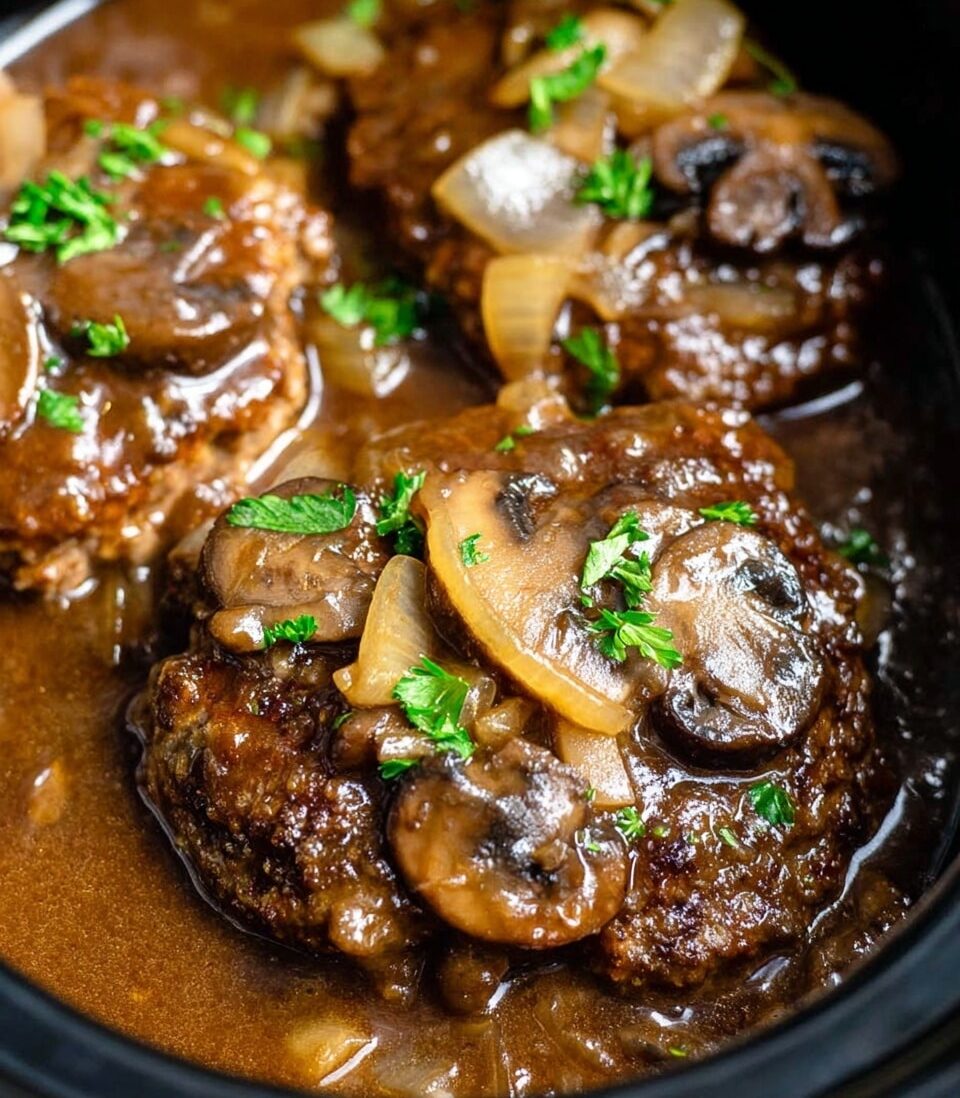 Keywords: Salisbury Steak, Slow Cooker Recipe, Comfort Food, Beef Patties, Mushroom Gravy, Easy Dinner