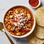 This Slow Cooker Tajín Chicken and Peppers recipe combines juicy boneless chicken thighs with pinto beans, green chiles, and vibrant bell peppers, all seasoned with zesty Tajín for a flavorful, easy-to-make meal. Perfectly tender and aromatic after slow cooking, it’s served with crumbled queso fresco and pairs beautifully with rice, tortillas, or tortilla chips.