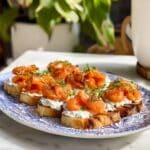 Smoked Salmon Tartine is a fresh and flavorful open-faced sandwich that combines creamy dill-infused cheese, marinated smoky salmon, and crispy shallots atop toasted baguette slices. It’s perfect for a light lunch or a fancy appetizer that’s easy to assemble.