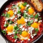Keywords: Shakshuka, eggs, tomato sauce, Middle Eastern breakfast, vegetarian, skillet eggs, poached eggs in tomato sauce