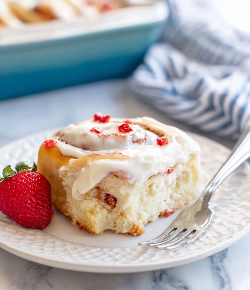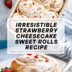 Delight in these luscious Strawberry Cheesecake Sweet Rolls, featuring a soft yeast dough filled with fresh, sweet strawberries and topped with a creamy vanilla cream cheese frosting. Perfect for breakfast, brunch, or a special dessert treat, these rolls are baked to a golden brown and finished with a fresh strawberry garnish for a burst of flavor.