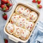 Delight in these luscious Strawberry Cheesecake Sweet Rolls, featuring a soft yeast dough filled with fresh, sweet strawberries and topped with a creamy vanilla cream cheese frosting. Perfect for breakfast, brunch, or a special dessert treat, these rolls are baked to a golden brown and finished with a fresh strawberry garnish for a burst of flavor.
