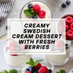 Swedish Cream with Berries is a delicate and creamy dessert that combines the richness of sour cream and heavy cream with a touch of vanilla. Lightly sweetened and set with gelatin, this treat is perfect for a refreshing finish to any meal.