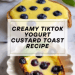 TikTok custard toast, also known as yogurt toast, is a delightful breakfast or snack that combines creamy custard with thick, toasted bread. You can make it easily using an air fryer or oven for a warm, comforting treat topped with fresh blueberries or your favorite toppings.