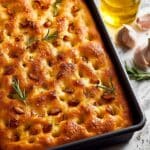 This classic Italian focaccia recipe features a soft, airy bread enriched with mashed potato for extra tenderness and a crispy olive oil crust. Highlighted with signature dimples and topped with delicious options like confit garlic & rosemary, cherry tomatoes, or kalamata olives, it’s perfect as an appetizer, snack, or sandwich bread.