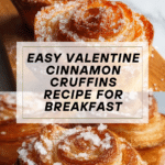 These Valentine Delicious Cruffins are a delightful twist on classic pastries, combining the flaky layers of croissants with the ease of muffins. Infused with cinnamon and sugar, they make a perfect sweet treat for a cozy morning or special occasion.