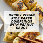 Keywords: vegan rice paper dumplings, vegan appetizer, tofu dumplings, pan-fried dumplings, peanut sauce, Asian vegan recipes