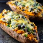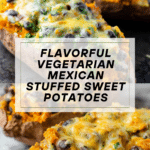 Keywords: vegetarian stuffed sweet potatoes, Mexican stuffed sweet potatoes, black bean sweet potatoes, healthy stuffed sweet potatoes, baked stuffed sweet potatoes, meatless Mexican recipe