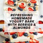 Yogurt bark is a refreshing and healthy treat that’s perfect for warm days or a guilt-free snack. Made with creamy Greek yogurt and topped with fresh berries and crunchy almonds, it’s easy to prepare and deliciously satisfying.