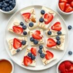 This refreshing Yogurt Bark is a healthy and delicious frozen treat made with creamy Greek yogurt, sweet honey, and vanilla, topped with fresh strawberries, blueberries, and crunchy almonds. Perfect for a nutritious snack or a light dessert, it requires no baking and is easy to prepare. Simply mix, spread, freeze, and break into pieces for a delightful, guilt-free indulgence.